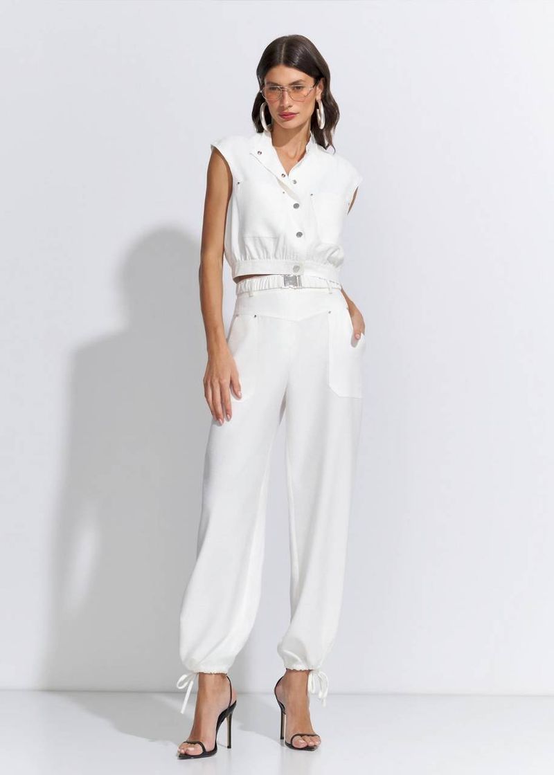 Conjunto Colete Bolsos Calça Carrot Alfaiataria Visco - Off White