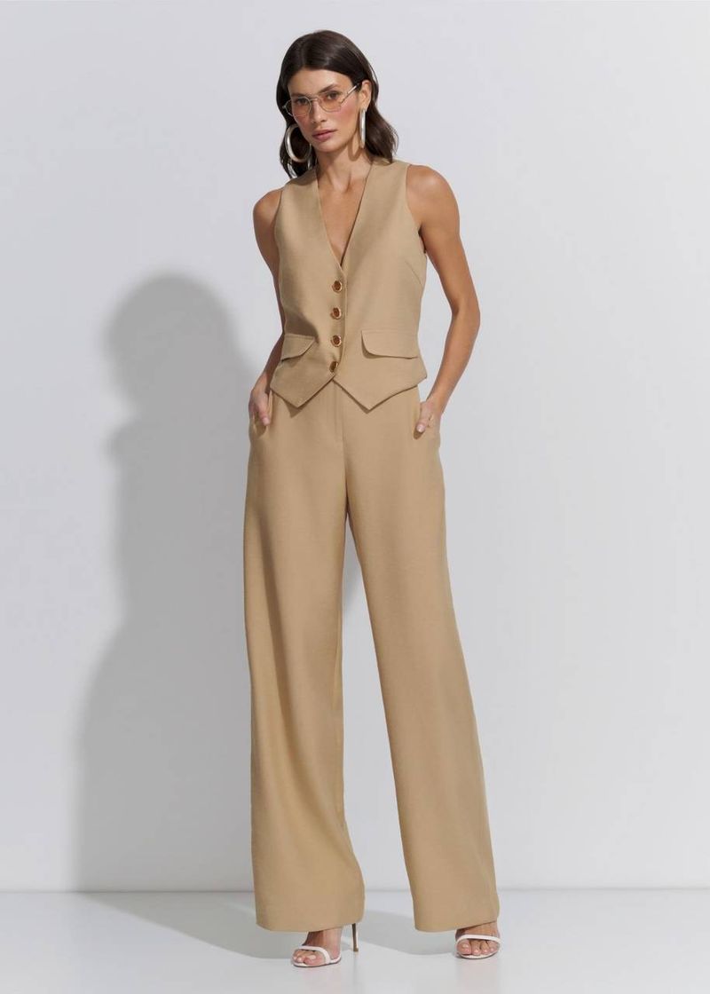 Conjunto Colete Calça Visco Linen - Areia