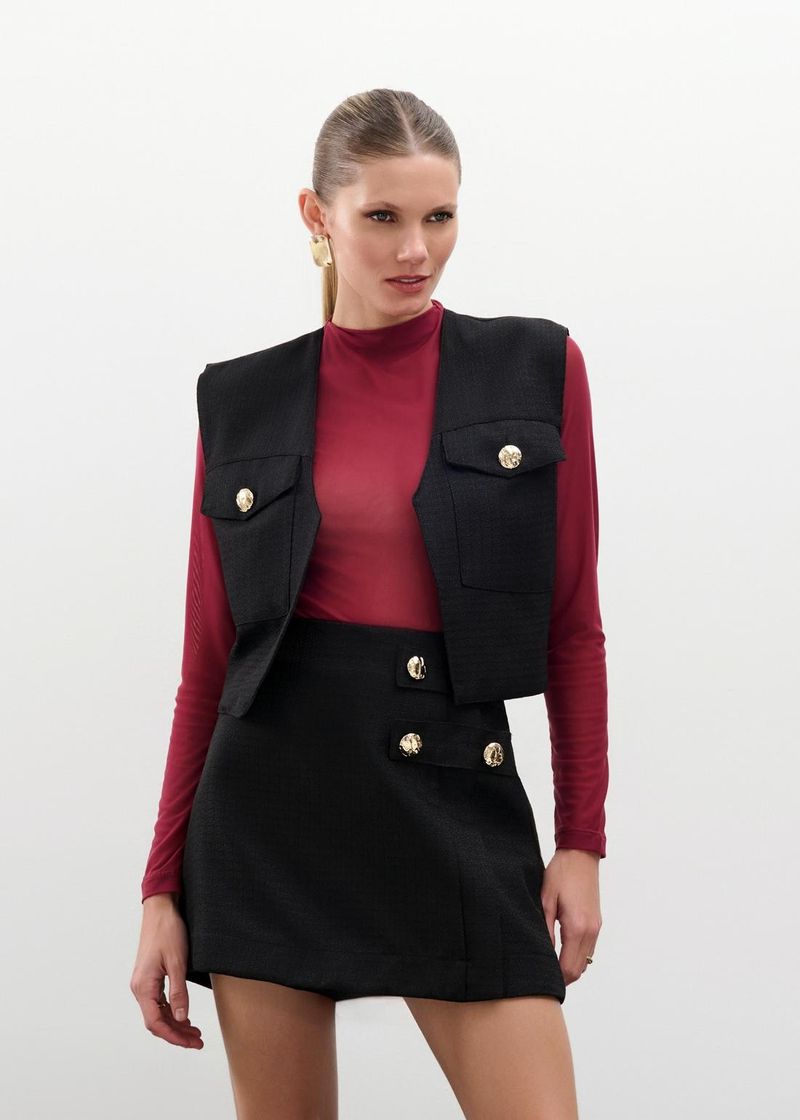 Conjunto Colete Short Saia Tweed Amelie - Preto