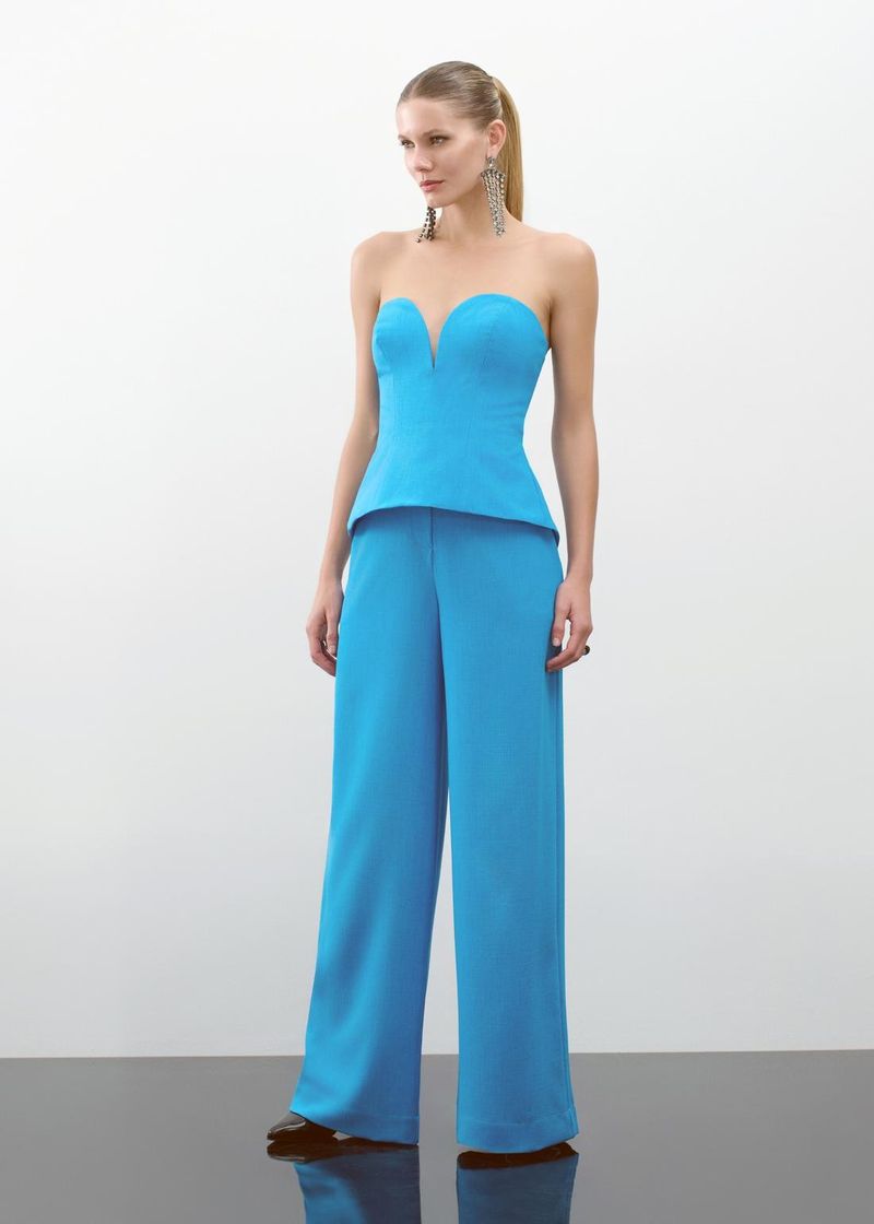 Conjunto Corset E Calça Em Crepe Rustic - Azul