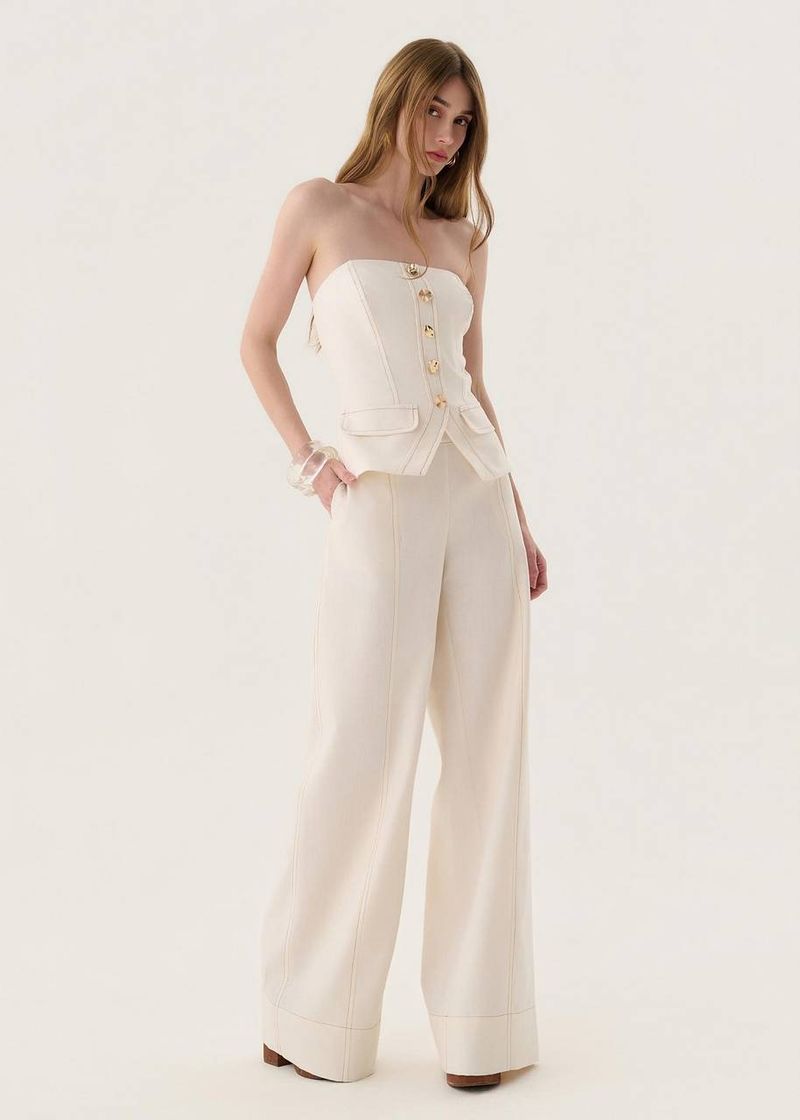 Conjunto Corset Wide Leg Linen Look - 05 Vanilla