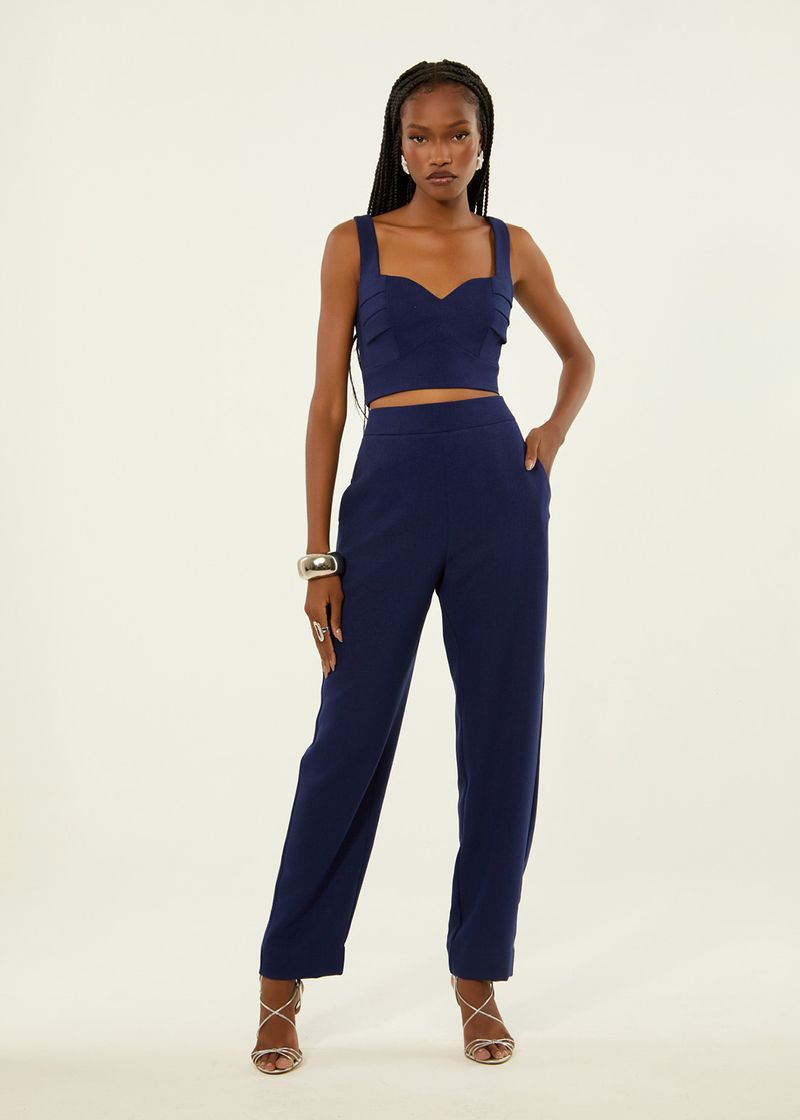 SaleEm AltaConjuntosBest SellersConjunto Crepe Top Cropped E Calça - Navy