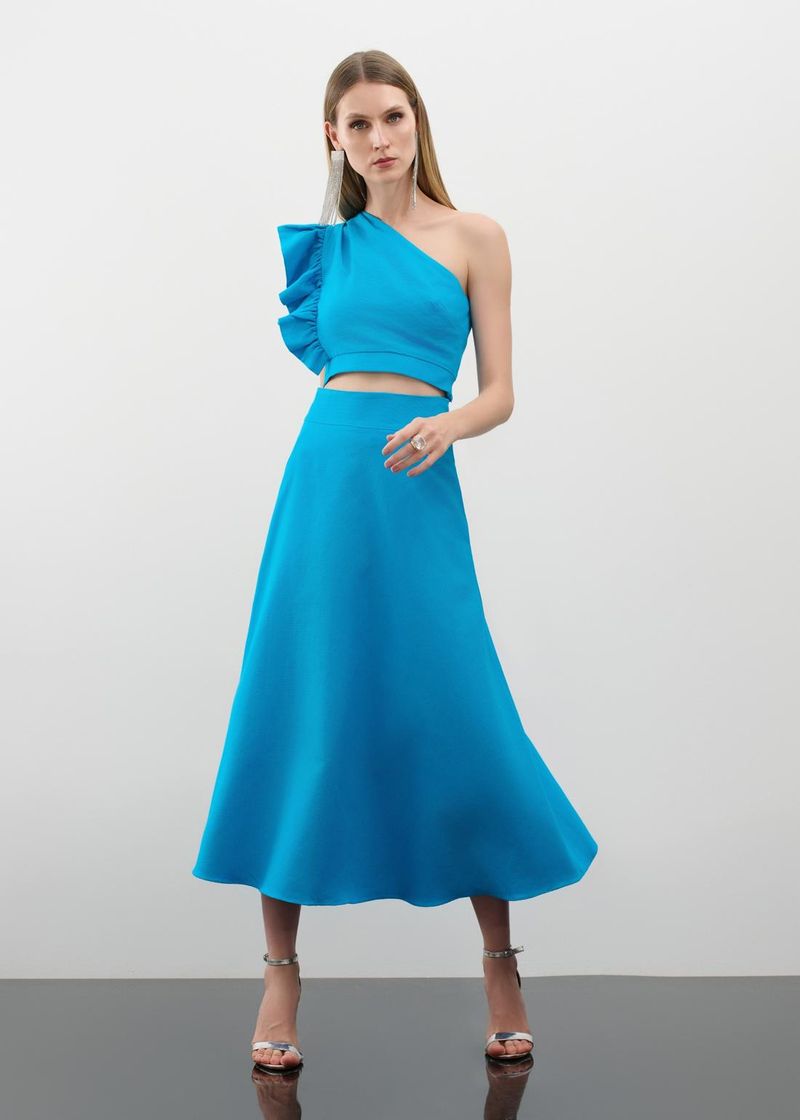 Conjunto Cropped E Saia Mídi Cotton Linen - Azul