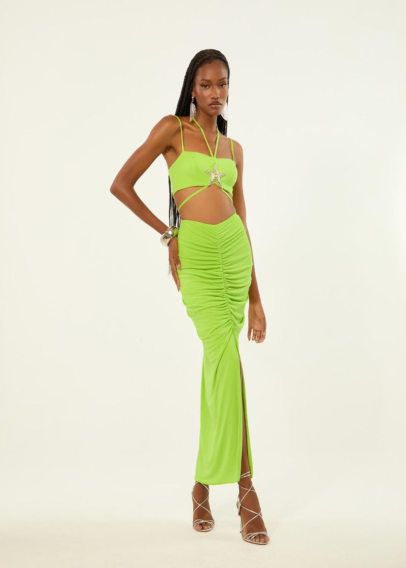 Conjunto De Malha Top E Saia Midi Season - Maca Verde