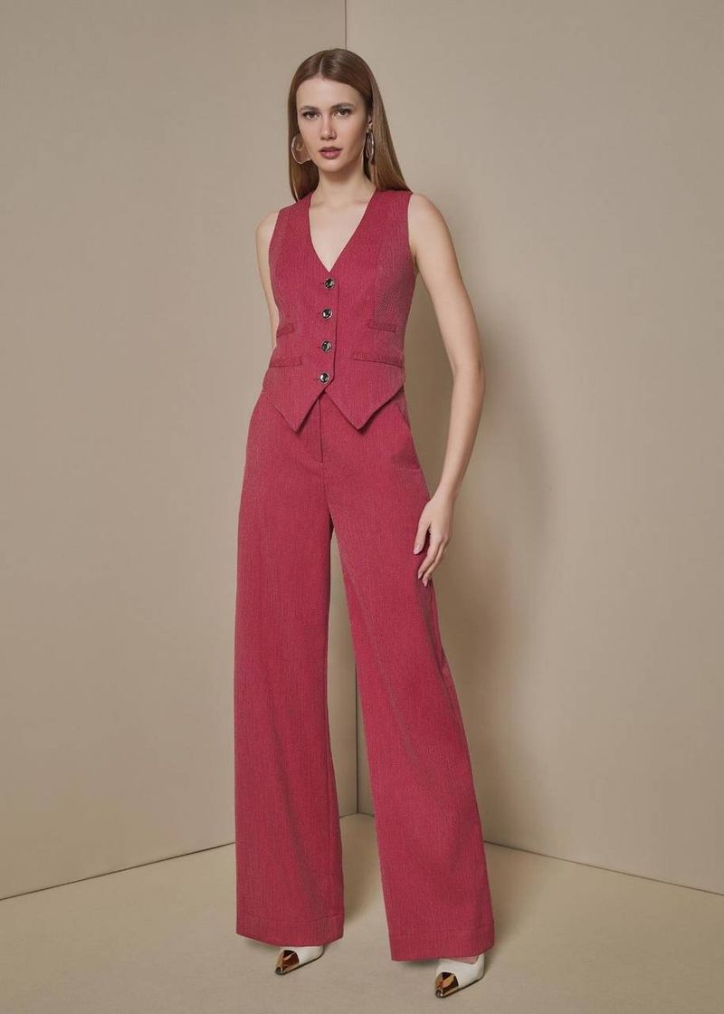 Conjunto Feminino Colete E Wide Leg Double Risk - Bordo