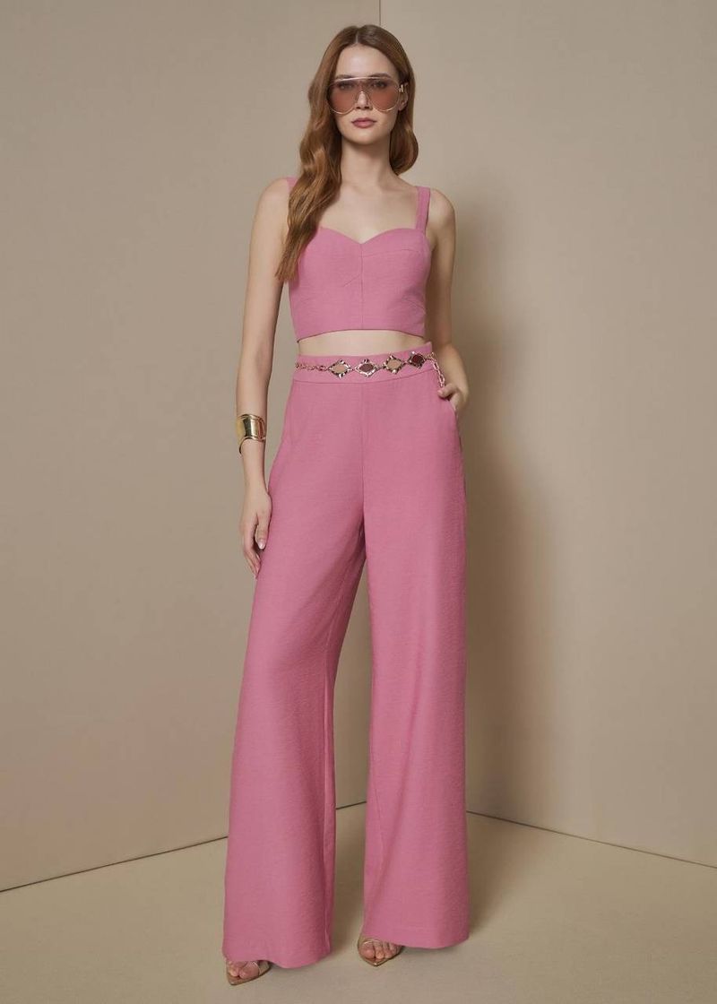 Romântico e delicado, o conjunto Rose encanta pela harmonia entre suavidade e estrutura. O cropped com recortes e o zíper destacável traz modernidade, enquanto a calça wide leg acrescenta leveza ao visual. Um look ideal para quem gosta de unir feminilidade e contemporaneidade.