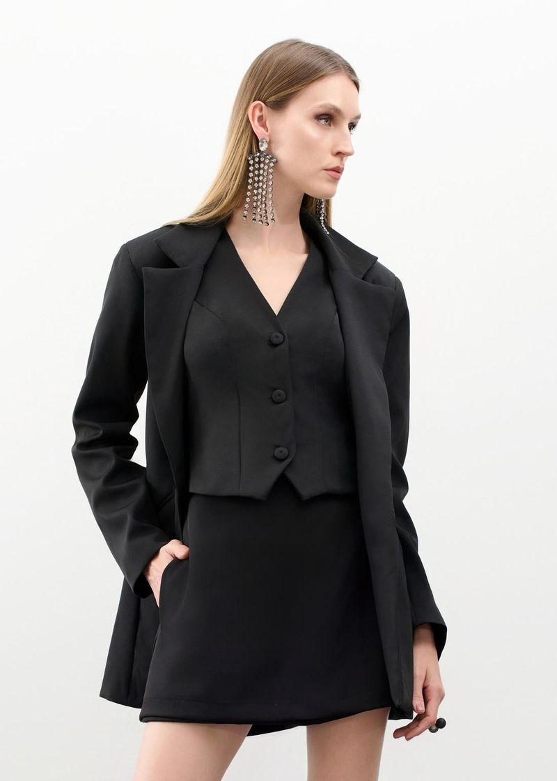 Conjunto Short Saia Blazer Colete Alfaiataria - Preto