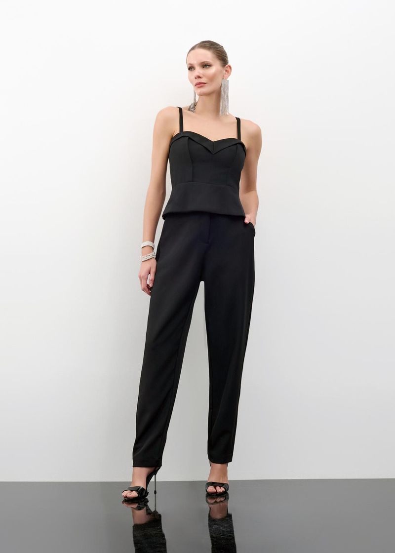 Conjunto Top Calça Cenoura Alfaiataria - Preto