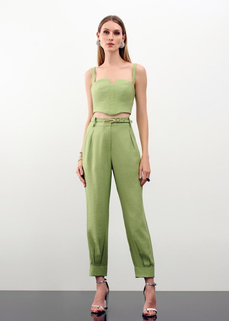 Conjunto Top E Calça Com Cinto Alfaiataria Galant - Matcha