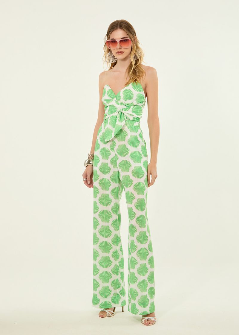 Conjunto Top E Calça Wide Leg Estampa Conchas - Energy Green