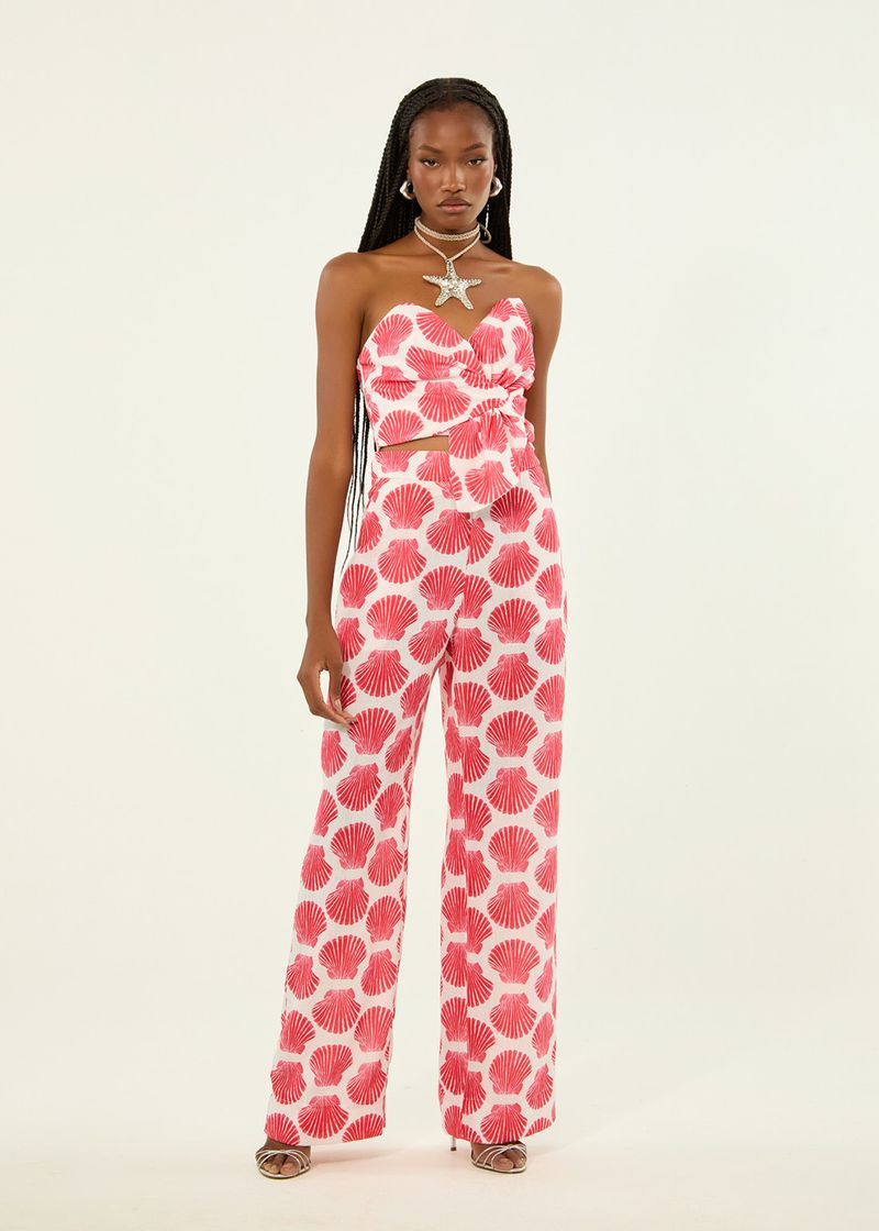 Conjunto Top E Calça Wide Leg Estampa Conchas - Passion