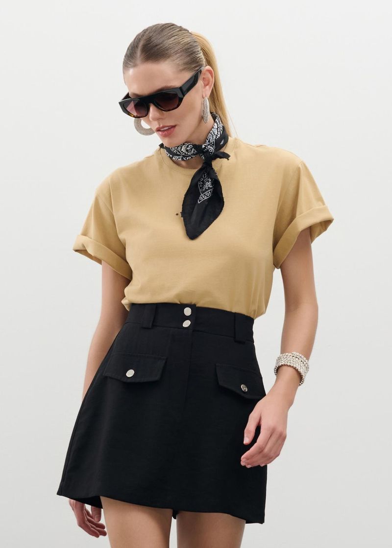 Conjunto T-shirt E Short Saia Alfaiataria Visco - Preto