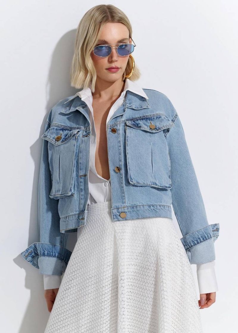 A jaqueta jeans em lavagem clara ganha atitude com a modelagem cropped e mangas bufantes que imprimem feminilidade e estilo. Os maxi bolsos frontais e o tecido 100% algodão reforçam o caráter utilitário com toque contemporâneo. Versátil e atemporal, é a terceira peça ideal para elevar produções básicas ou complementar vestidos leves com personalidade. Um clássico reinventado para quem ama moda com presença.