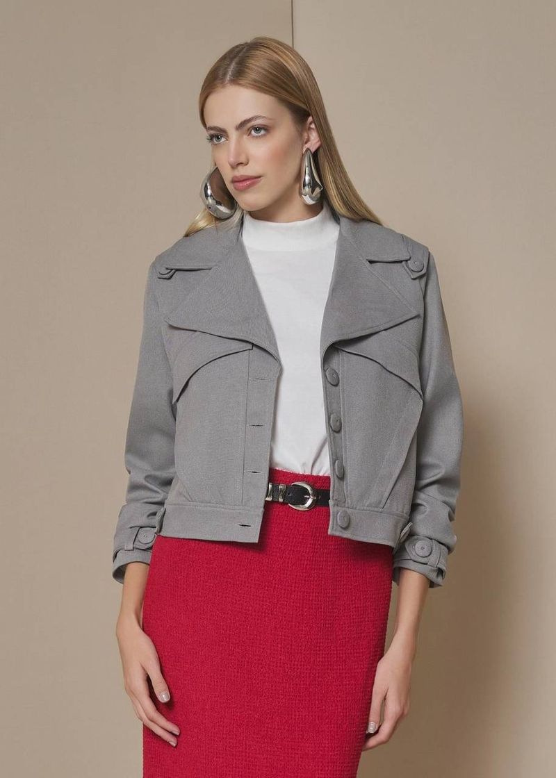 Jaqueta Feminina Curta Com Botões Em Alfaiataria - Cinza
