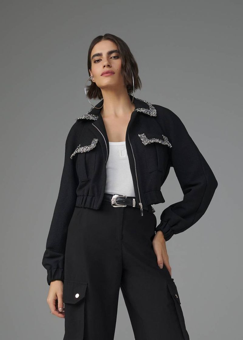 Combinando tradição e modernidade, esta jaqueta em malha tweed apresenta acabamentos impecáveis e um design contemporâneo. O zíper de metal confere um toque urbano, enquanto as mangas raglan garantem mobilidade e conforto. O elástico nos punhos e na barra proporciona um ajuste preciso, valorizando a silhueta. A aplicação de aviamento eleva o design, garantindo um acabamento sofisticado. Na cor preta, a peça ganha um ar de sofisticação imponente, ideal para produções elegantes e impactantes.