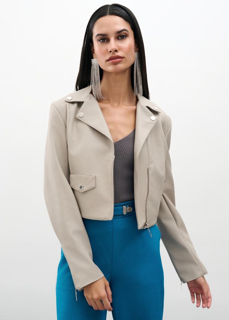 SaleEm AltaCouroCasacos e JaquetasJaqueta Perfecto Basic Leather - Cinza