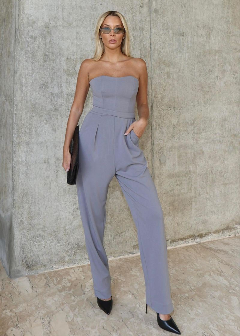 Macacão Corset Pochete Scuba Glam - Cinza