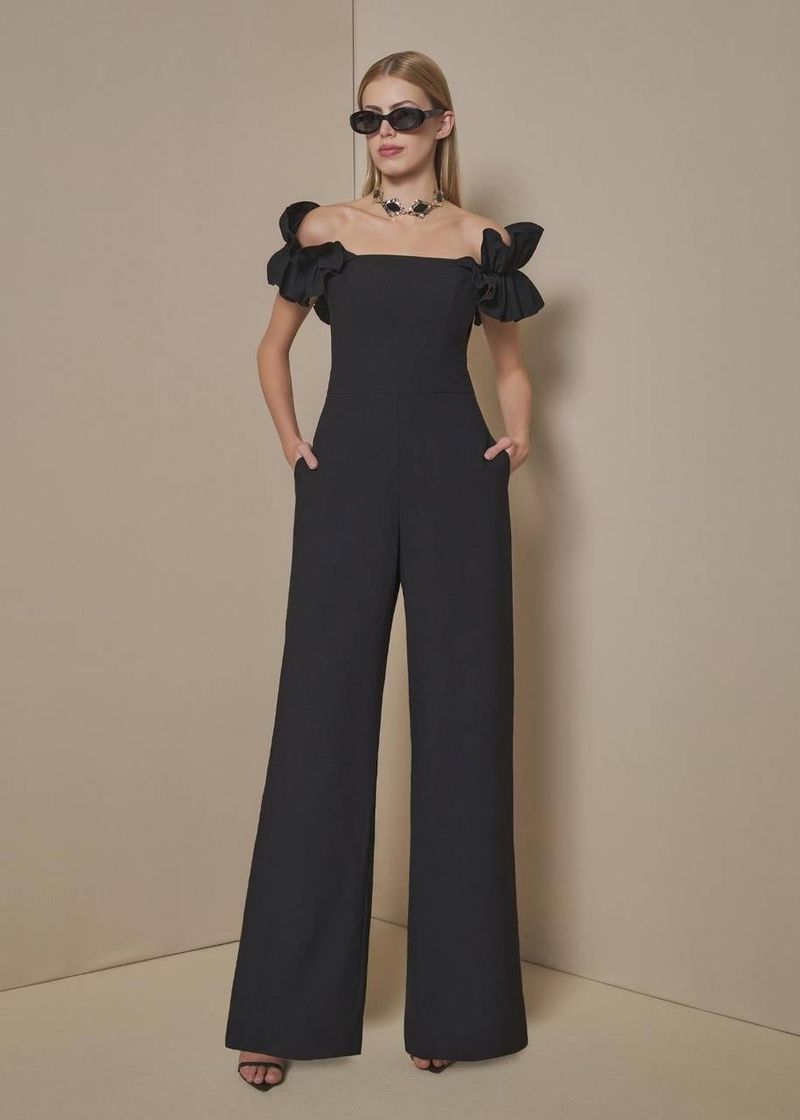 Macacão Feminino Ombro A Ombro Com Babados - Preto