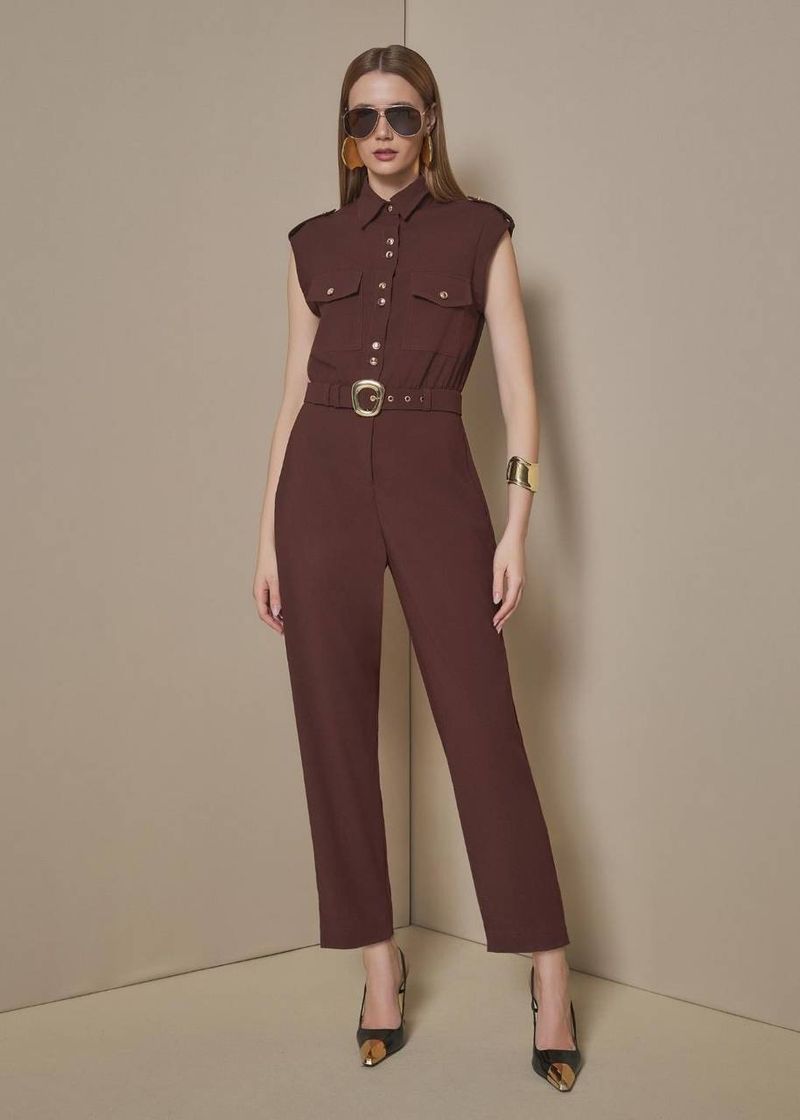 RoupasNew InAKROMacacãoMacacão Feminino Utilitário Cinto E Fivela - Choco