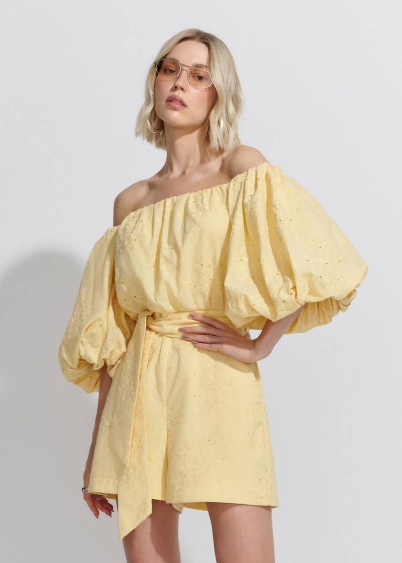 Macaquinho Ombro A Ombro Bordado Garden - Manteiga