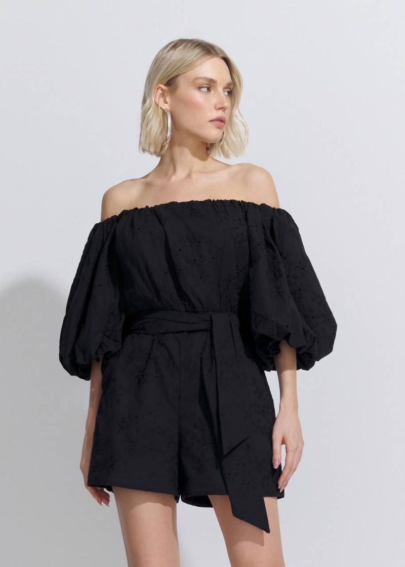 SaleMacacãoMacaquinho Ombro A Ombro Bordado Garden - Preto