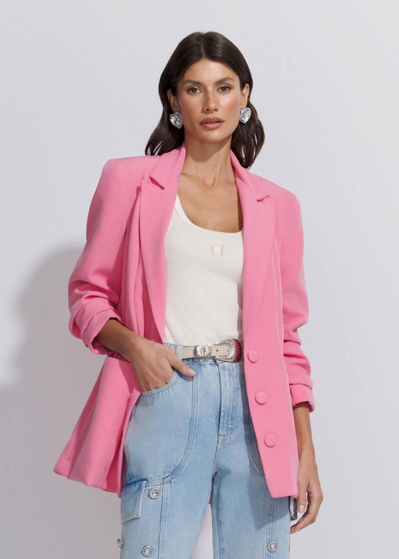 SaleCasacos e JaquetasMaxi Blazer Alfaiataria Dense - Rosa