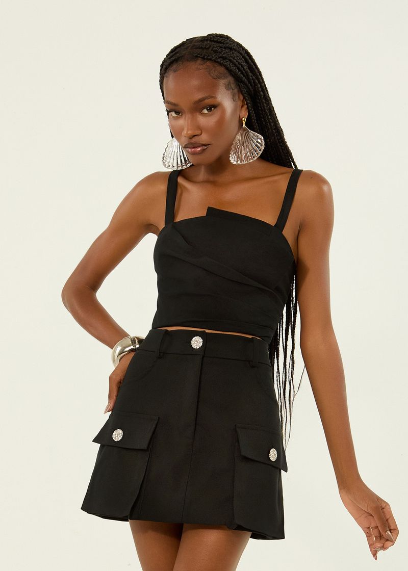 Mini Saia Cargo Crepe Sofistic - Preto