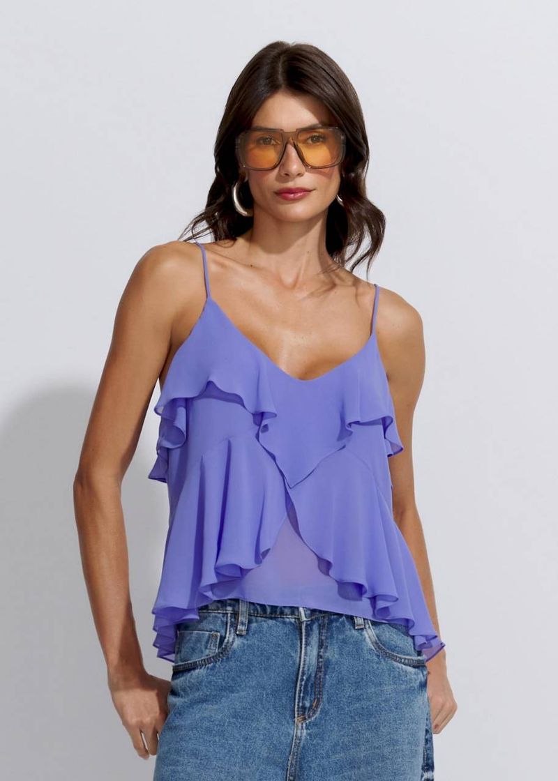 A regata na cor lilás transmite leveza e elegância com um toque contemporâneo e romântico. Confeccionada em Air Silk, ela oferece caimento fluido e textura suave, realçando os babados e o decote V com delicadeza. O tom lilás, moderno e feminino, ilumina o look e permite composições que vão do casual chic ao elegante com facilidade. Combine com jeans para um visual fresh e despretensioso ou aposte em alfaiataria para um mood refinado. Uma peça versátil e charmosa para quem busca frescor, estilo e feminilidade em uma única escolha.