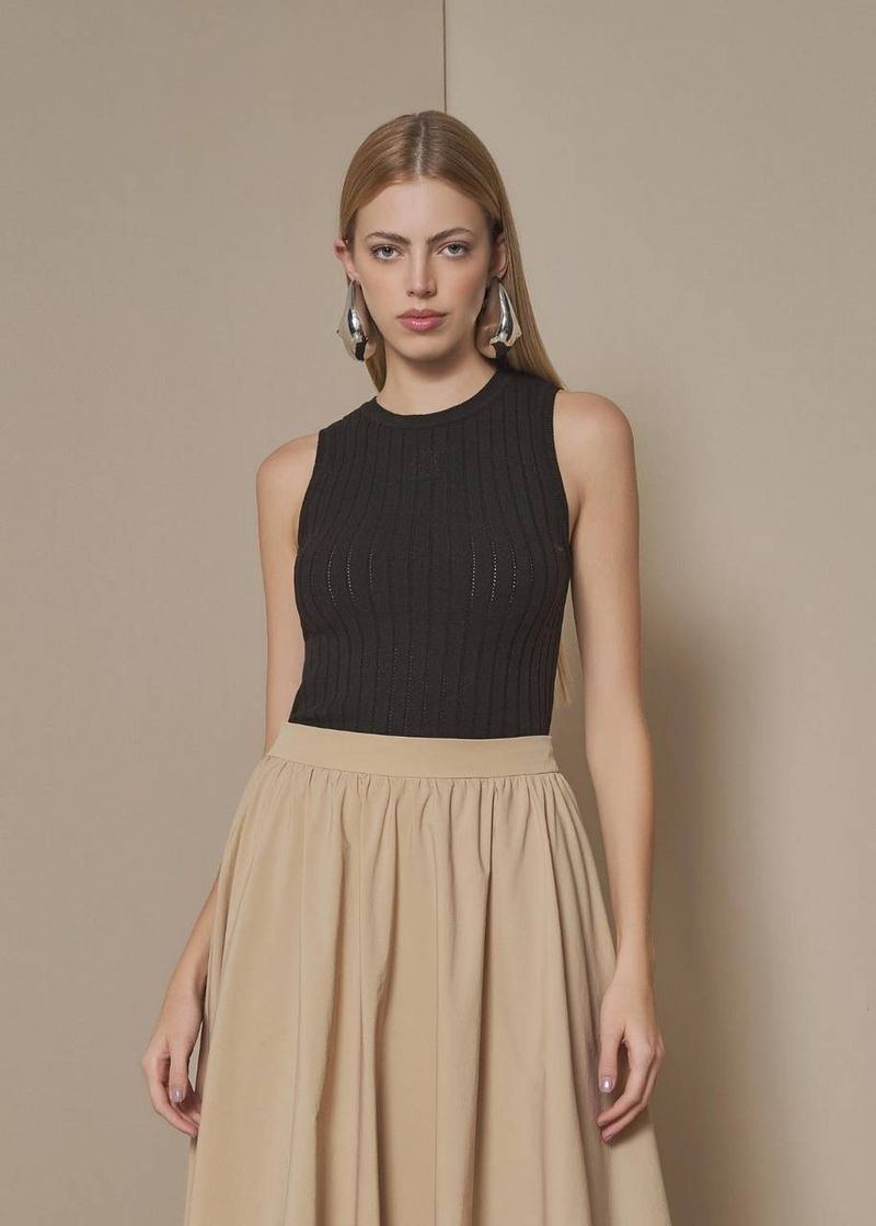 A blusa em tricot Preto é sinônimo de elegância versátil. A textura confere modernidade ao visual, enquanto o corte sem mangas deixa a peça atual e fácil de estilizar em diversas ocasiões. O bordado personalizado adiciona o detalhe perfeito para reforçar o DNA LORE sem exageros. Ideal para composições sofisticadas, desde produções noturnas com acessórios marcantes até looks casuais que pedem um básico de impacto.