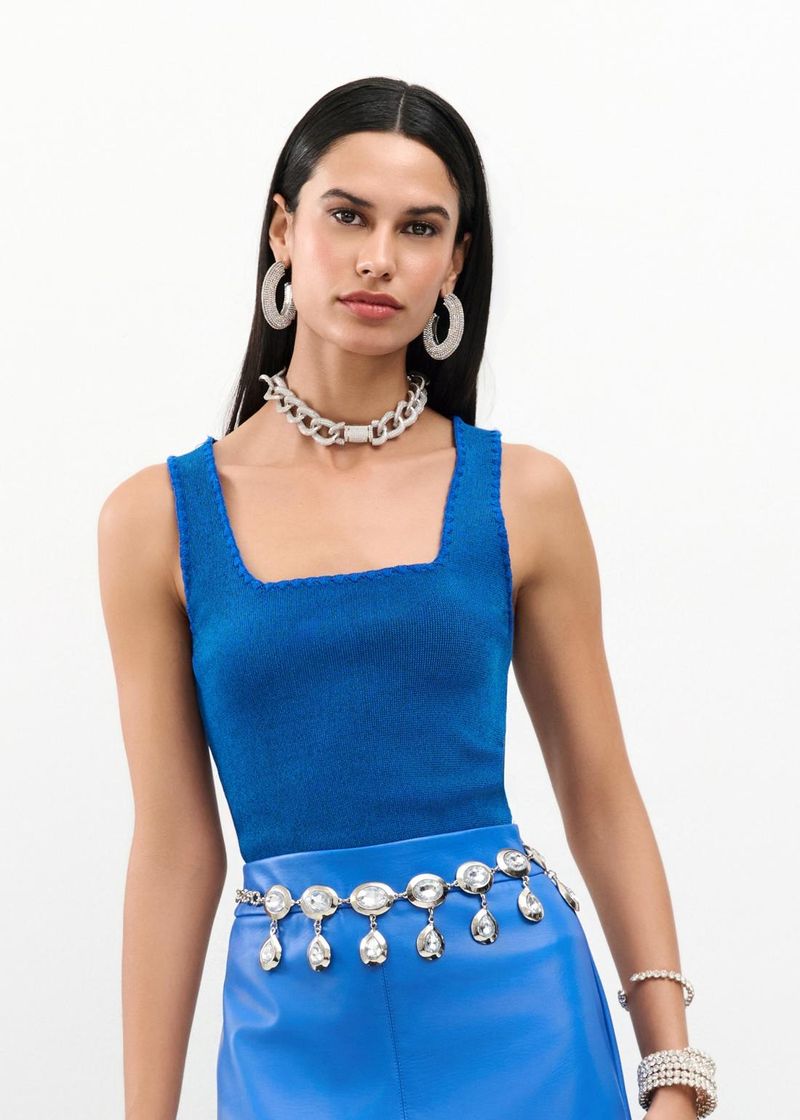 SaleBlusasTricotRegata Tricot Com Crochet - Real Blue