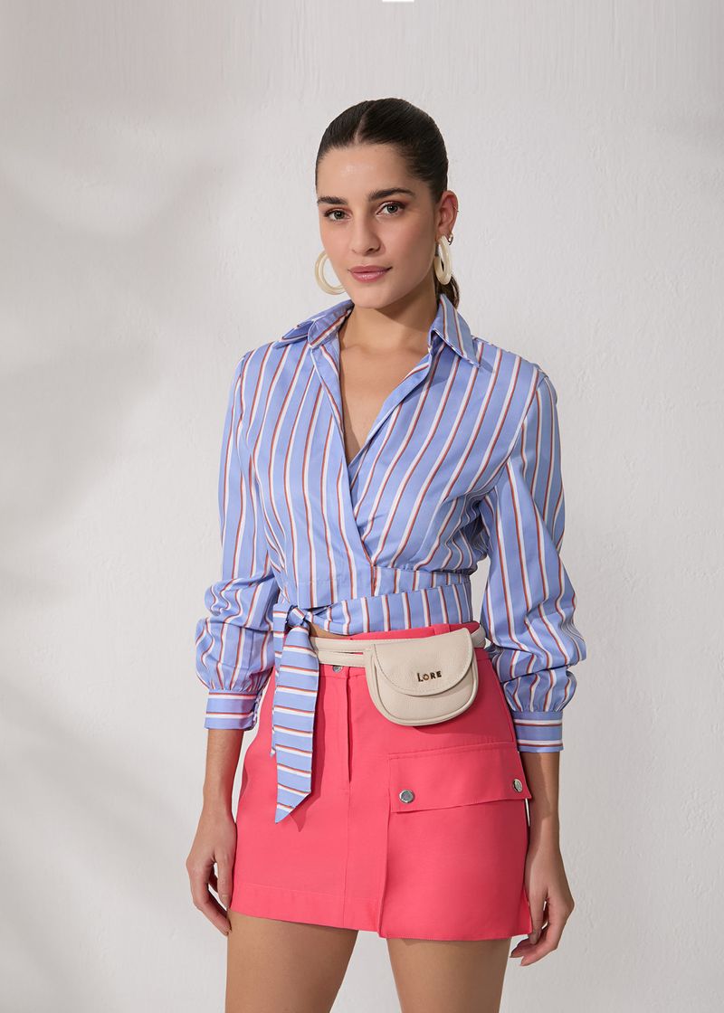 A saia curta em tecido de alfaiataria é uma peça-chave que combina funcionalidade e estilo. Com passantes no cós para ajuste personalizado e um bolso cargo moderno, oferece praticidade sem comprometer a estética. O fechamento frontal com zíper e botões de metal adiciona um toque sofisticado. Combine-a com uma blusa de seda para um look elegante e use sapatilhas para um estilo casual e versátil. A cor coral traz um frescor vibrante, tornando esta saia uma adição versátil e estilosa ao seu guarda-roupa.