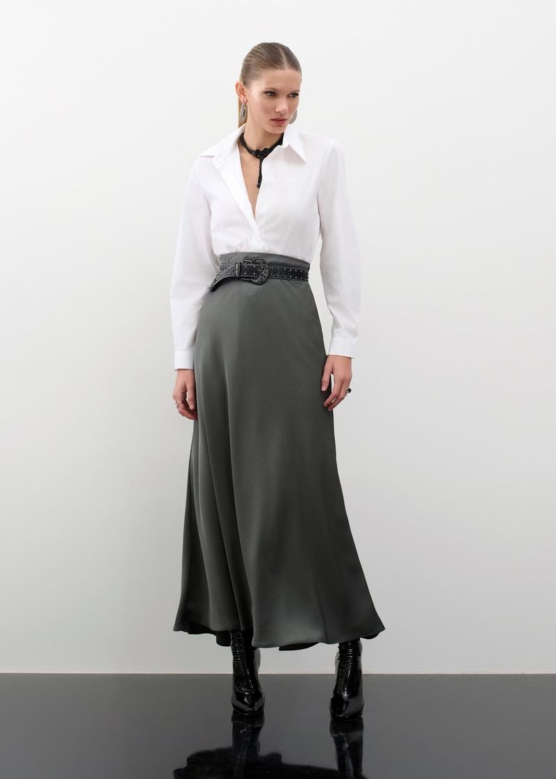 Saia Maxi Mídi Crepe Touch - Chumbo