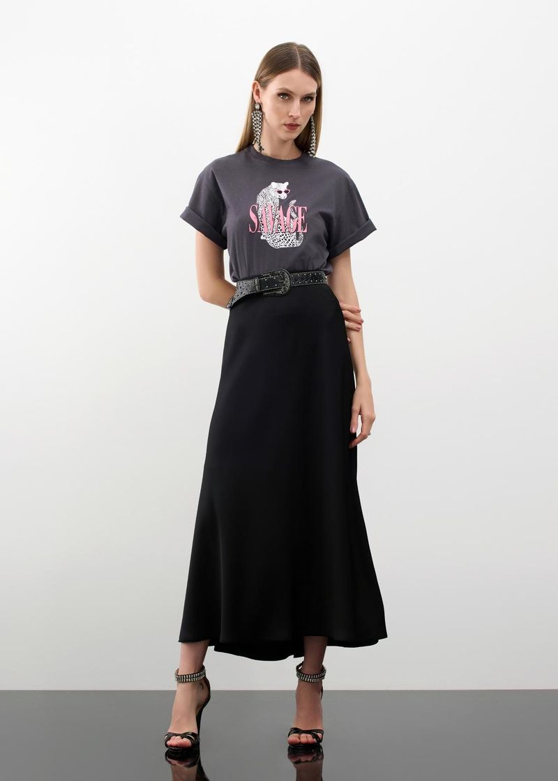 Saia Maxi Mídi Crepe Touch - Preto