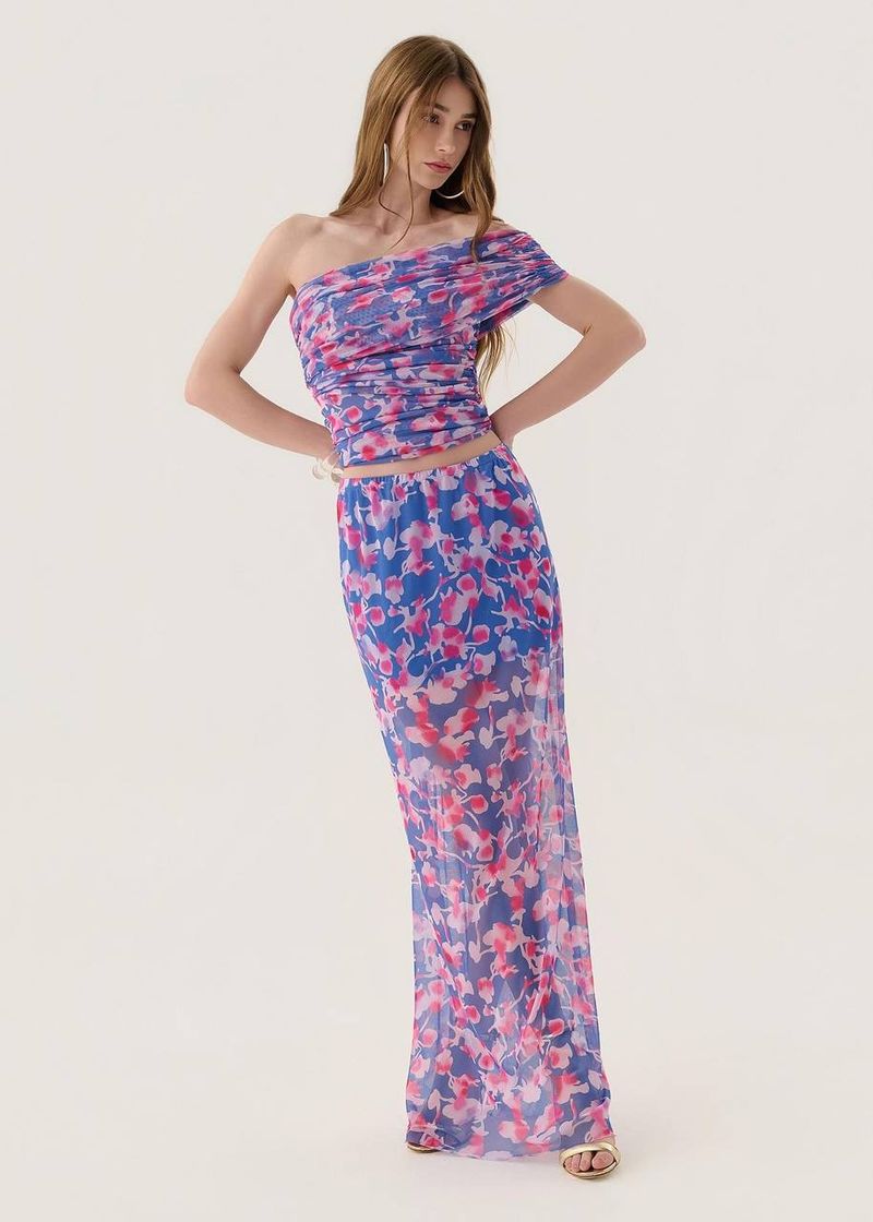 Na versão Lilás, a saia midi estampada traz um ar delicado e romântico. O elástico na cintura proporciona ajuste perfeito, enquanto o tecido fluido realça os movimentos com leveza. Uma escolha versátil que pode ser usada tanto em produções casuais com sandálias rasteiras quanto em ocasiões especiais com salto fino e acessórios marcantes.