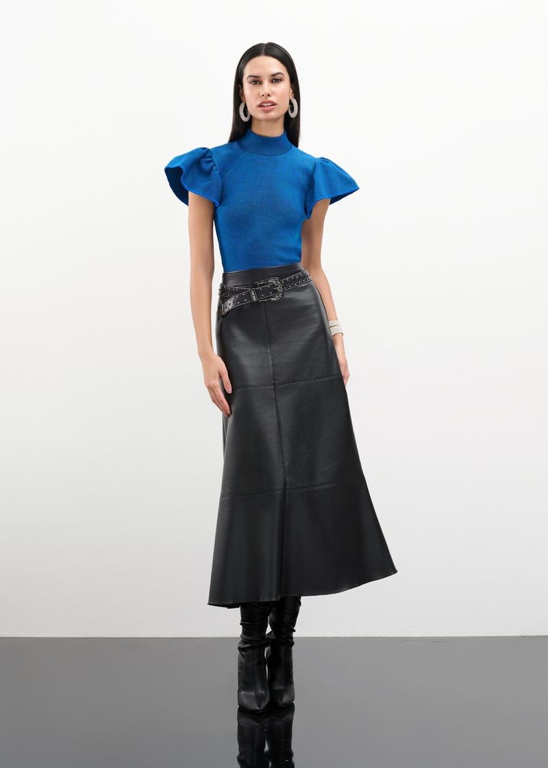 Saia Mídi Basic Leather - Preto