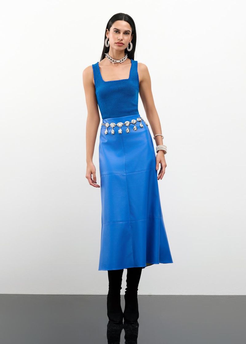 Saia Mídi Basic Leather - Real Blue