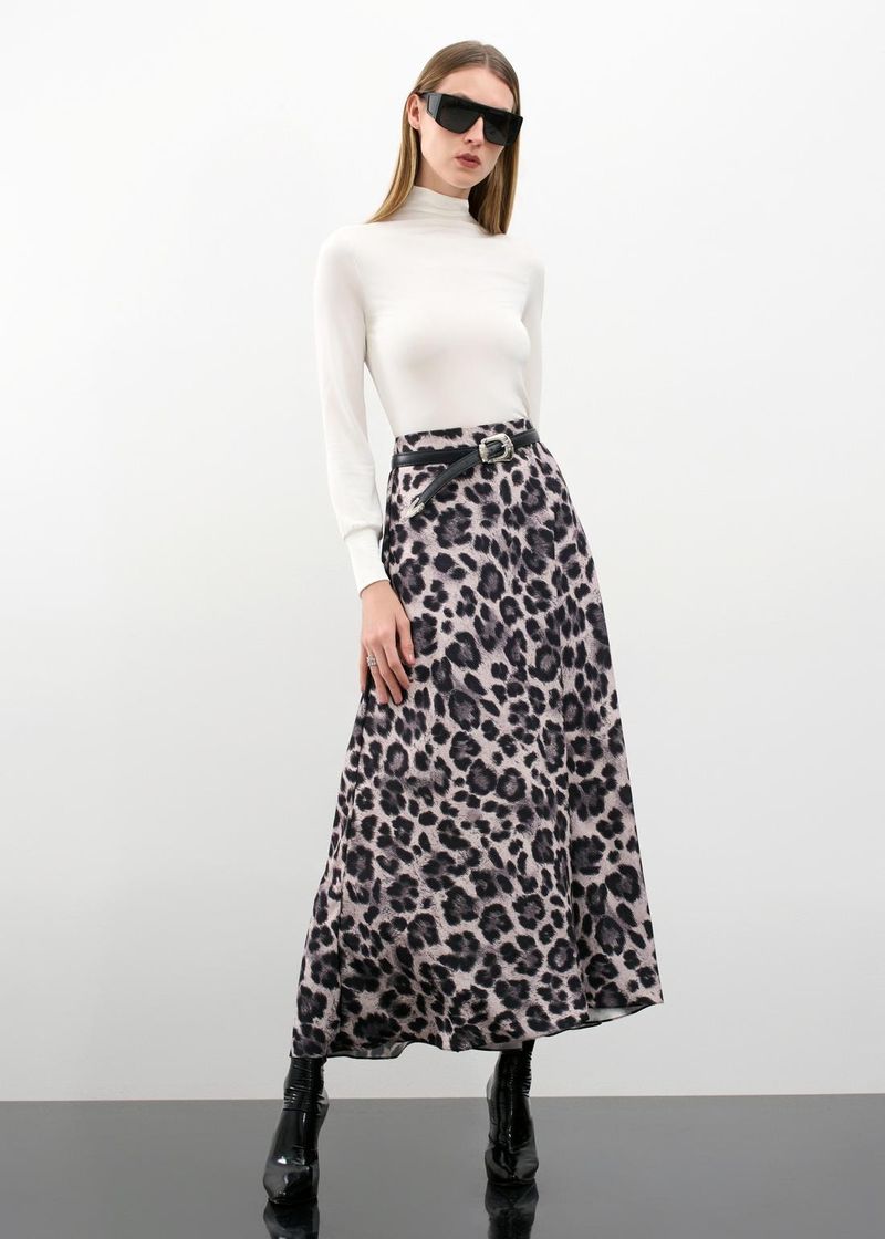 Saia Mídi Evasê Estampa Jungle - Onça