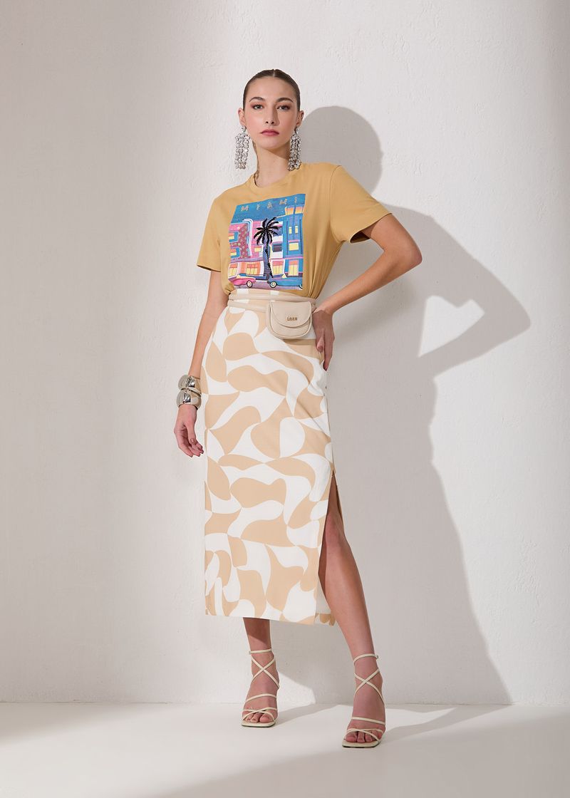 Saia Mídi Fenda Paradiso - Capuccino