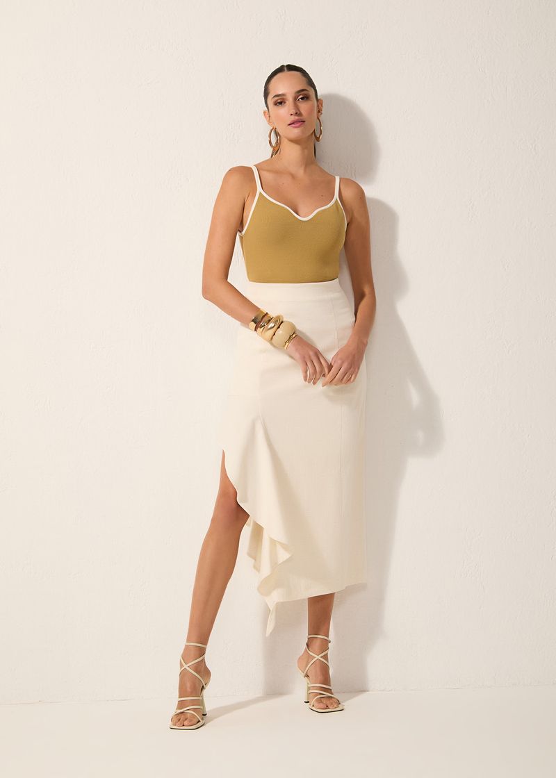 Saia Midi Jabour Rustic Cotton - Natural