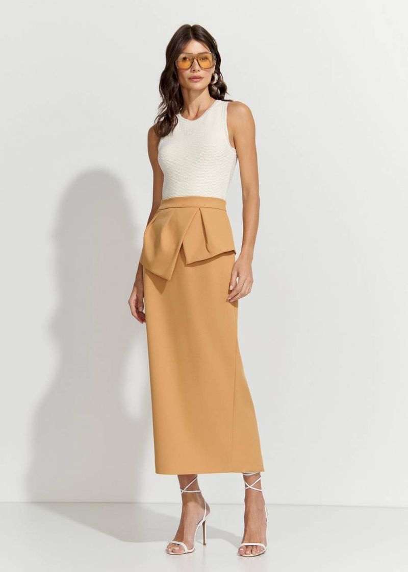 Saia Midi Peplum Crepe Elegance - Camel