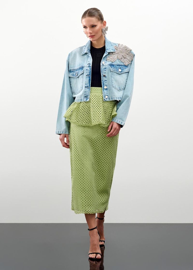 Saia Mídi Peplum Rendada - Matcha