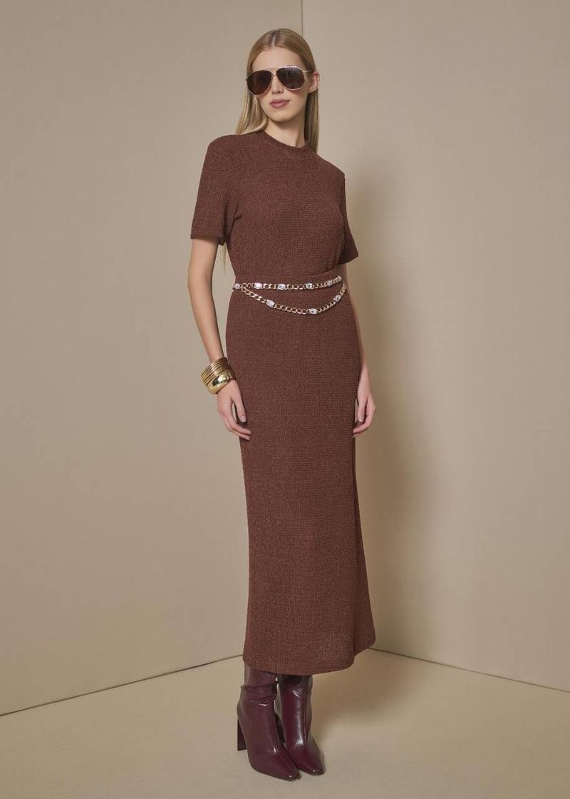 Saia Midi Reta De Malha - Choco