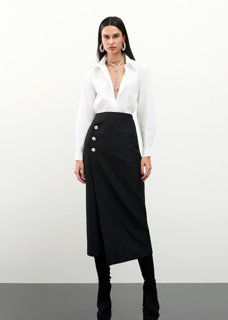 Saia Mídi Tweed Amelie - Preto