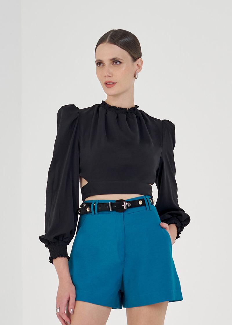Short em tecido alfaiataria com passantes duplos no cós que conferem um toque refinado à peça, enquanto as pences traseiras garantem um ajuste elegante. O seu fechamento frontal com zíper e botão oferece praticidade, e a bainha de 4cm adiciona um toque moderno à peça. Este short proporciona conforto e elegância na medida certa. Arrase!