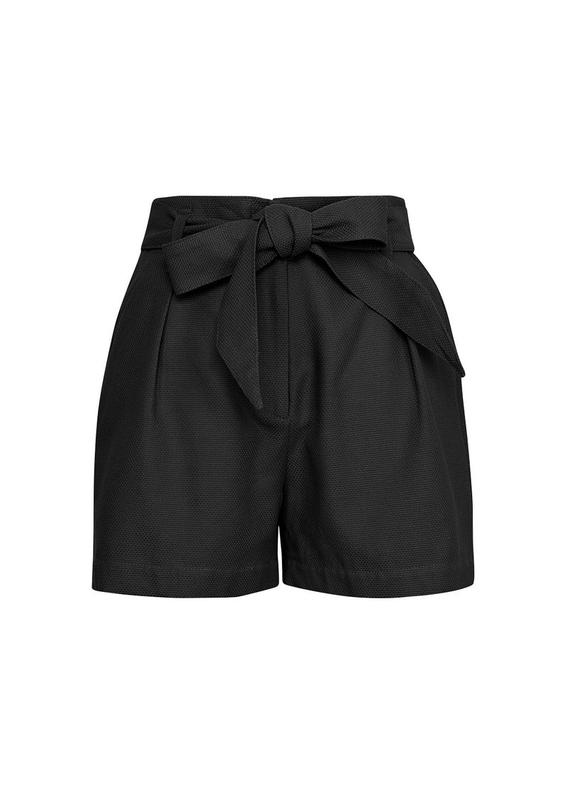 Short de cintura alta em algodão na cor Preto, oferece uma combinação excepcional de estilo e conforto. Este modelo apresenta passantes no cós, pregas para volume, bolsos faca, pences traseiras que asseguram um caimento impecável, além de fechamento com zíper e colchetes. Acompanha uma faixa para amarração, permitindo ajustar o visual de acordo com a preferência. Combine este short com blusinhas leves e sandálias para um look casual e descontraído, mantendo a elegância.