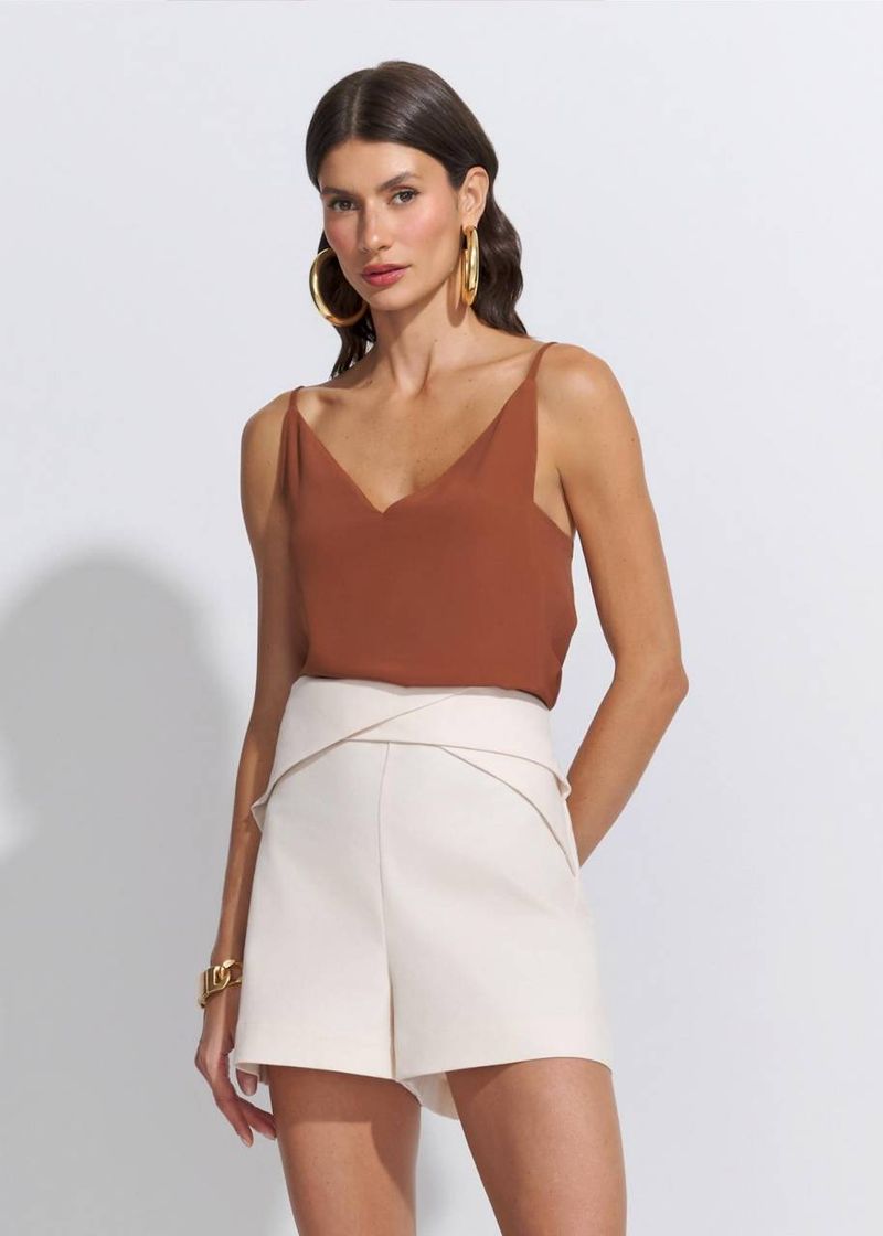 Em tom aveia, o short de sarja revela a sofisticação dos neutros elegantes, com design impecável e cós torcido que valoriza a cintura com modernidade. O caimento estruturado garante conforto aliado ao estilo refinado. Combine com camisas fluidas em seda, regatas minimalistas ou blazers de alfaiataria para um look versátil e atemporal. Ideal para ocasiões diurnas, como almoços e encontros casuais-chic. Finalize com sandálias de tiras delicadas ou mocassins elegantes.