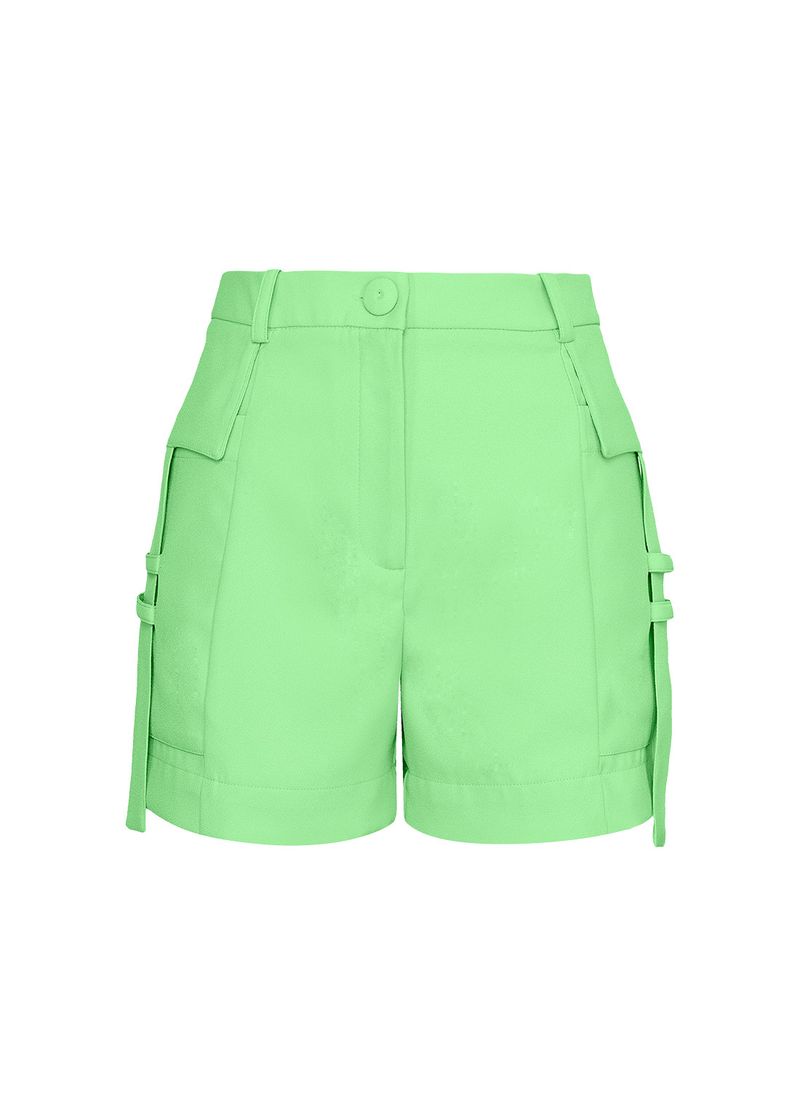 Sinta-se deslumbrante com este short em crepe na cor Summer Green, com cós estruturado, recortes que valorizam a silhueta e bolsos laterais com tampa práticos. Os detalhes de faixas com passantes adicionam modernidade e funcionalidade ao design, e o fechamento por zíper e botão forrado garante um ajuste elegante. Esta é definitivamente a peça perfeita para um visual contemporâneo e versátil, ideal para um fim de tarde com as amigas.
