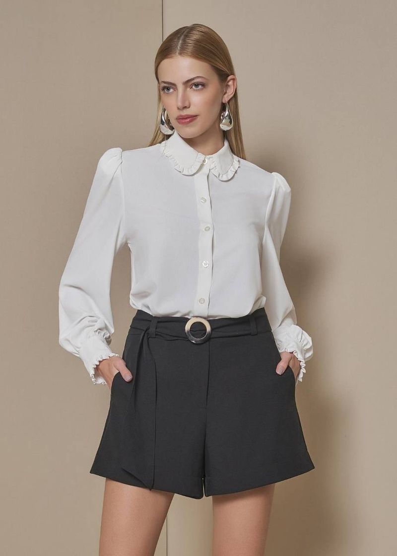 RoupasNew InAKROShortsShort Feminino Com Faixa Em Alfaiataria - Preto