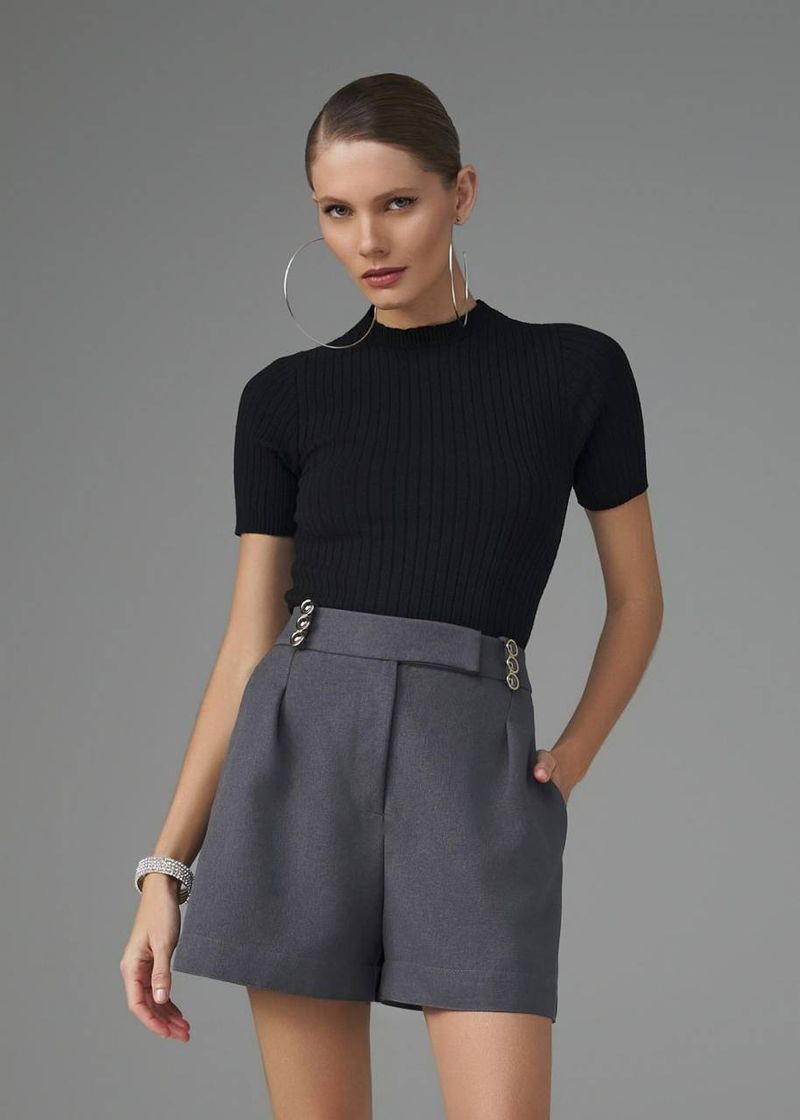 Com um corte preciso e acabamentos impecáveis, este short em alfaiataria sarjada combina elegância e modernidade. O cós trespassado define a cintura com sofisticação, enquanto os passantes com detalhe em metal personalizado elevam o design com um toque refinado. As pences traseiras garantem um ajuste perfeito, proporcionando um caimento impecável. Na cor chumbo, o modelo ganha um ar contemporâneo e sofisticado, ideal para produções atemporais.