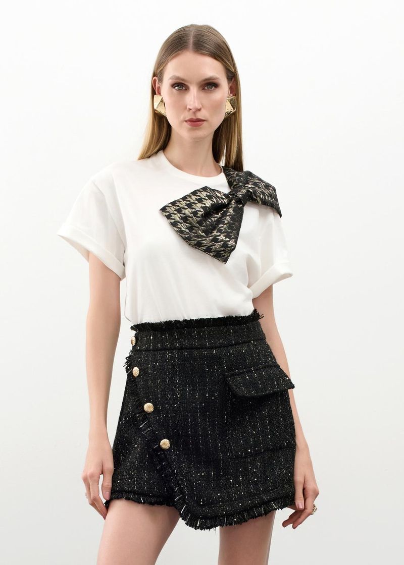 Short Saia Em Tweed Com Botões Golden Tweed - Preto
